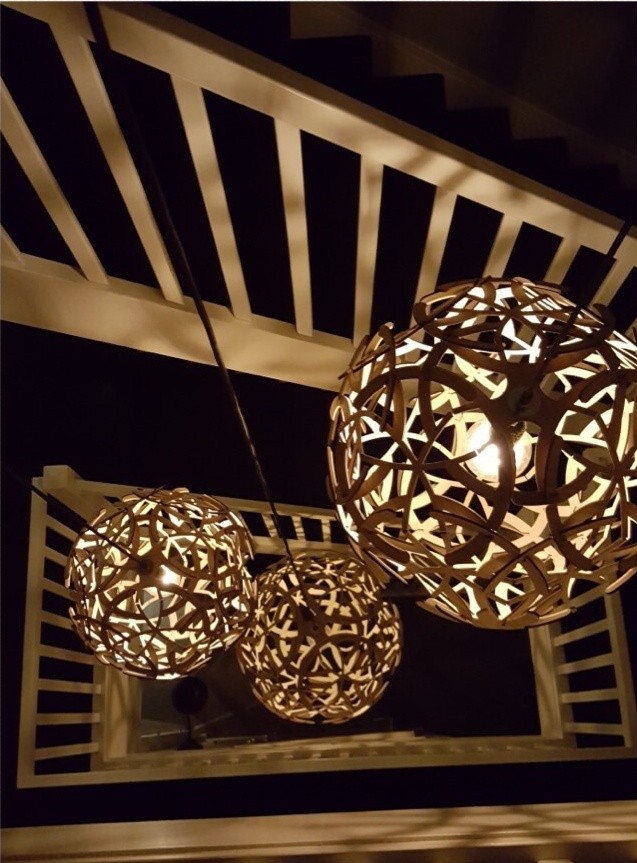 In the entrance hallway of a beautiful house in Heemskerk (in the Netherlands) hangs a set of 3 pendant Antlers. When entering through the front door you immediately see the biggest pendant with a diameter of 80 centimetres. A real eye catcher! If you look up after walking a few steps you see the other two pendants with a diameter of 50 centimetres.